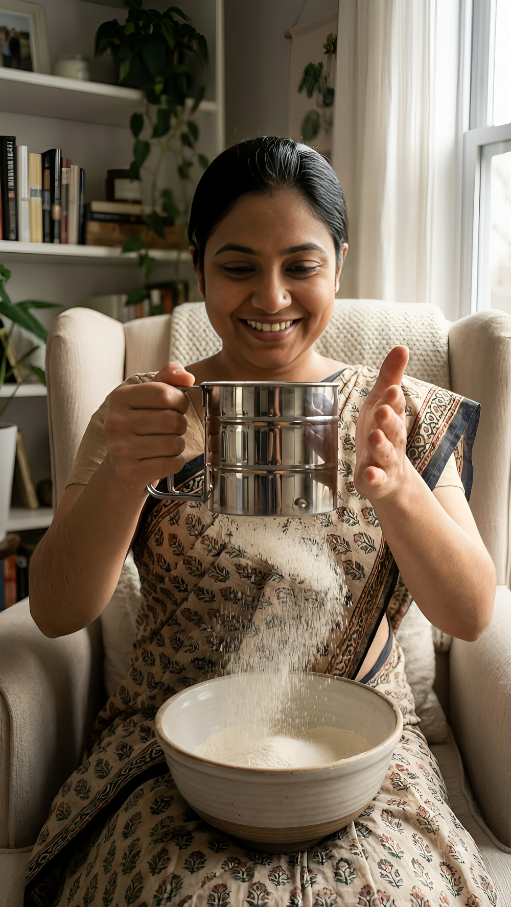 Atta chele (sifting flour) for soft rotis is so easy now. My hands used to get tired with the old shaking sieves, but this trigger handle is very convenient—one hand is enough. Even cocoa powder doesn’t clump anymore. Best kitchen tool I’ve bought this year for my daily cooking!